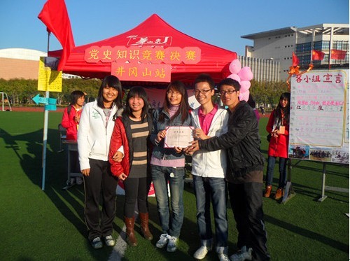 这是在中国共产党建党九十周年之际,政管党建为充实同学们的党史知识,重温中国共产党的光辉历程而举办的第一届党史知识竞赛。本次决赛采取了户外越野的模式进行,大大地激发了同学们的参与热情和增加了比赛的趣味性。