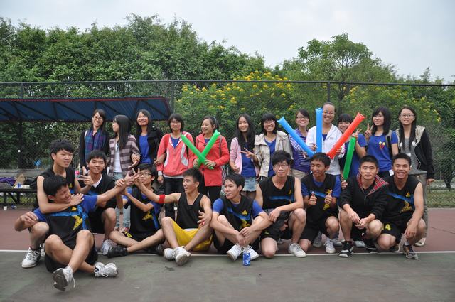 比赛开始后,场下加油的同学们,一边双手挥舞着七彩的充气棒,一边有节奏有激情地高喊“行一,加油!”场上的队员们驰骋飞舞,,打出了精彩的配合,严密的防守。比赛进行时,队员们都神情严肃,但每次死球时,看着场下加油的观众们,脸上总会有露出会心的笑容。队员与队员之间,进球之后,总会有各种各样的庆祝动作,击掌、撞胸,激情四射。可以看出,无论是场上拼搏的球员,还是场上加油的观众,大家更多的是在享受比赛这一过程,享受比赛带来的激情,带来的乐趣,而对于结果,沉浸在其中的我们,早已抛到九霄云外咯!