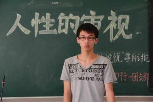 最后,由每个组派出一名代表对本组的观点进行陈述。每组成员都充分表达了自己的观点,同时也对其它组的观点进行了细致的聆听。在交流的过程中,大家对“小悦悦”事件有了更成熟的认识,并且大家都针对自身,提出了行之有效的建议。比如说,参与“蓝信封”等关爱儿童的公益活动。同时,大家也表达了拒绝冷漠、从我做起的决心,表示要多多从事慈善活动,让世界充满爱。