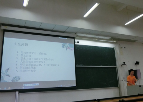 大会最后,由周雨琦同学在大会上对三下乡安全问题进行说明。三下乡期间需要同学们做好自我保护,不擅自去野外玩耍、不在半夜出门、不私自行动,遵守三下乡安全条例规定,保障自己的人身安全和财产安全。