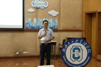 2018年5月21日18:40,由广东省社会管理研究会主办、广东外语外贸大学社会管理协会、广东外语外贸大学政治与公共管理学院团委学生会承办的第十二届广东省社会管理调研大赛决赛在广东外语外贸大学南校区图书馆报告厅隆重举行。本次比赛邀请电子科技大学中山学院人文社会科学学院公共管理系张存俭教授、韩俊英博士,广东省社会管理研究会常务副会长兼秘书长彭未名教授,广东外语外贸大学政治与公共管理学院副院长付桂芳教授、广东省社会组织管理学院副院长张信勇副教授、政治与公共管理学院公共事业管理系主任陈胜副教授、应用心理系王俊静老师,广东省社会组织研究中心贾晶晶老师担任评委,广东外语外贸大学校团委指导老师吴怡、商学院副院长丁浩、商学院团委书记杨欣、英语教育学院团委书记林泽龙、政治与公共管理学院党委副书记邵兵、办公室主任施可明、团委书记白志华、14、17级辅导员房瑞佳担任嘉宾莅临现场,观看比赛。