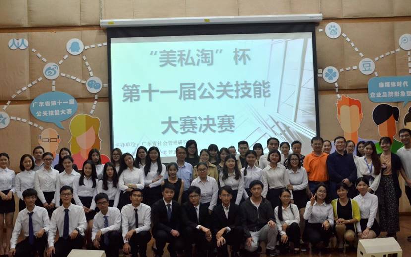 2017年11月13日下午7:00,由广东省社会管理研究会主办,广东外语外贸大学政治与公共管理学院(以下简称广外政管学院)承办的第十一届广东省“美私淘”杯公关技能大赛决赛于广东外语外贸大学南校区图书馆报告厅举行。广外政管学院“追光者”队于本次大赛中获得了一等奖。
