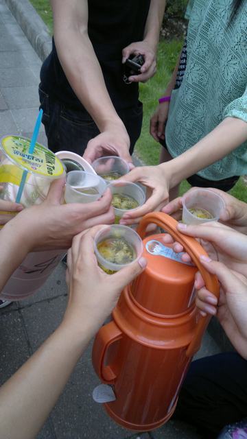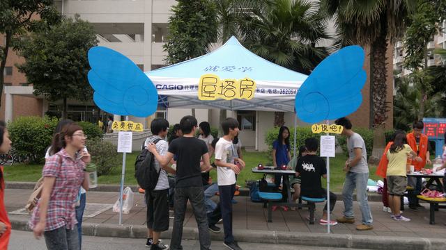 因为他们一直在坚持努力服务同学们却没怎么休息,尽管屋内是人潮涌动,尽管屋外是阳光毒辣。 后勤的同学不断地在补给水果沙拉和菊花杞子茶,由于人群是一波又一波,她们累到手都酸了却还坚持着,茶不够喝,又立刻到4栋楼下打水;“拉客”的同学一整个下午都在保持微笑和游说经过的同学们,他们的脸部表情都僵硬了却还锲而不舍。他们用甜美的笑容和体贴的话语赢得了不少同学们的称赞。