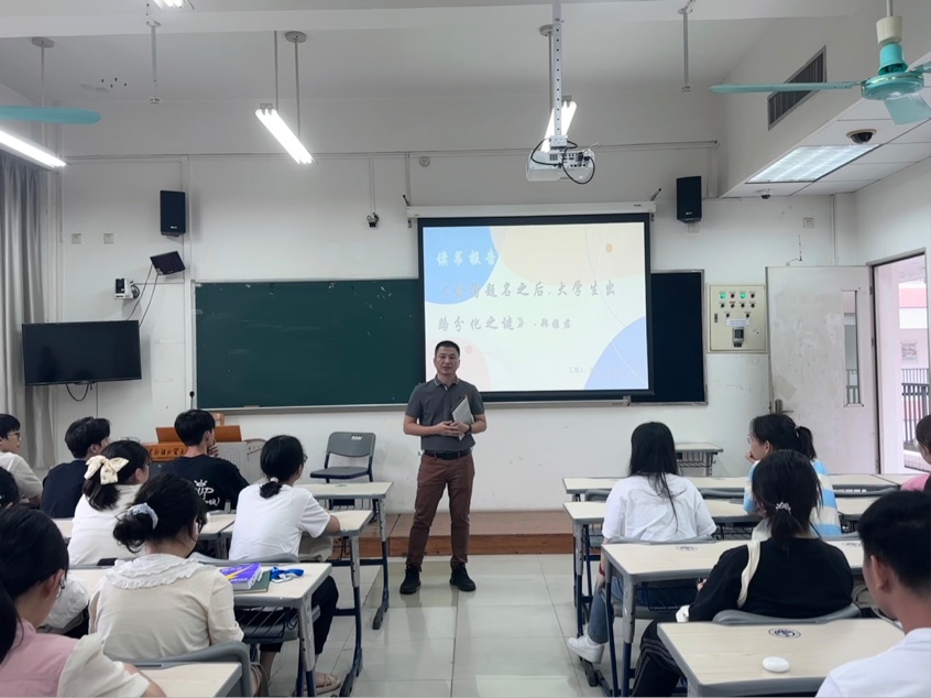2024年9月6日下午,为了更好地让本科新生认识到大学学习对我们的影响和意义,理解大学生毕业后的出路选择及其背后的社会机制,英国正版365官方网站在9月6日下午组织2024级新生开展“书香公管”本学期第一次读书分享活动—《金榜题名之后:大学生出路分化之谜》。学院党委副书记陈哲,2024级本科生辅导员黄浩以及全体本科新生出席。