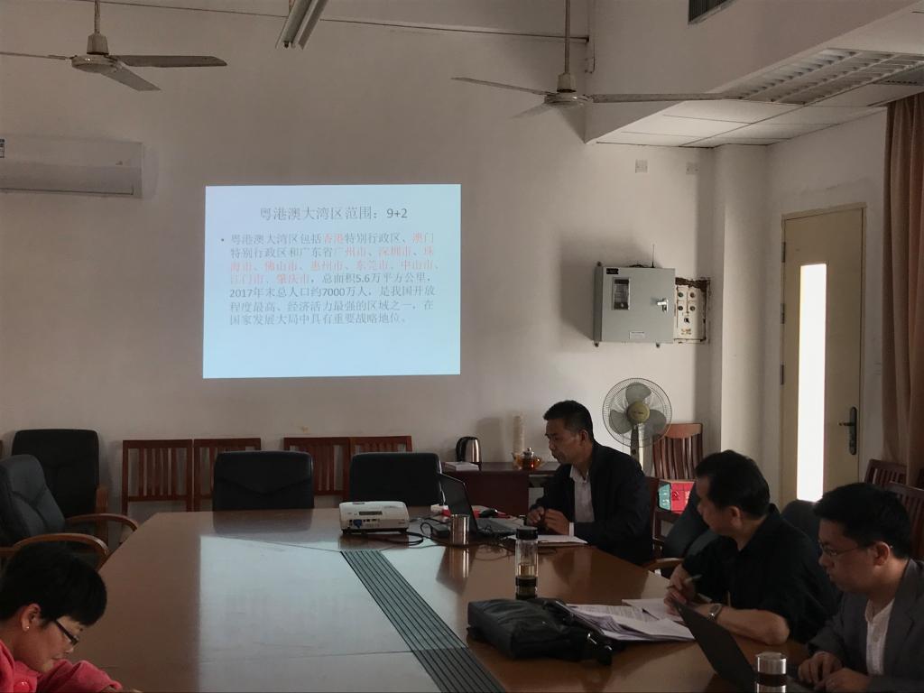 高云坚书记首先带领大家学习中共中央国务院印发的《粤港澳大湾区发展规划纲要》,他结合学院发展实际强调,一要抢占粤港澳大湾区建设之先机,积极主动寻求与港澳高校的合作,包括探索开展相互承认特定课程学分、实施更灵活的交换生安排、科研成果分享转化、联合培养硕博士事项等方面的合作交流。二要发挥涉外院校和社会治理平台高地的优势,服务粤港澳大湾区社会治理,在珠三角九市港澳居民比较集中的城乡社区,有针对性地拓展社区综合服务功能,为港澳居民提供及时、高效、便捷的社会服务。三要做好粤港澳大湾区社会治理的等级评估、人才资格认证、职称评审、运营管理等方面的工作。