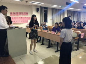 本次比赛是学院党建工作坊中的一个内容,旨在加强同学们对学习党的十九大等时政知识的学习,进一步加强对党中央的最新思想的了解与认识。决赛在庄严的国歌中正式拉开序幕。比赛共分为四部分,分别是队伍介绍、抢答环节、时政词汇猜测与讨论展示环节。