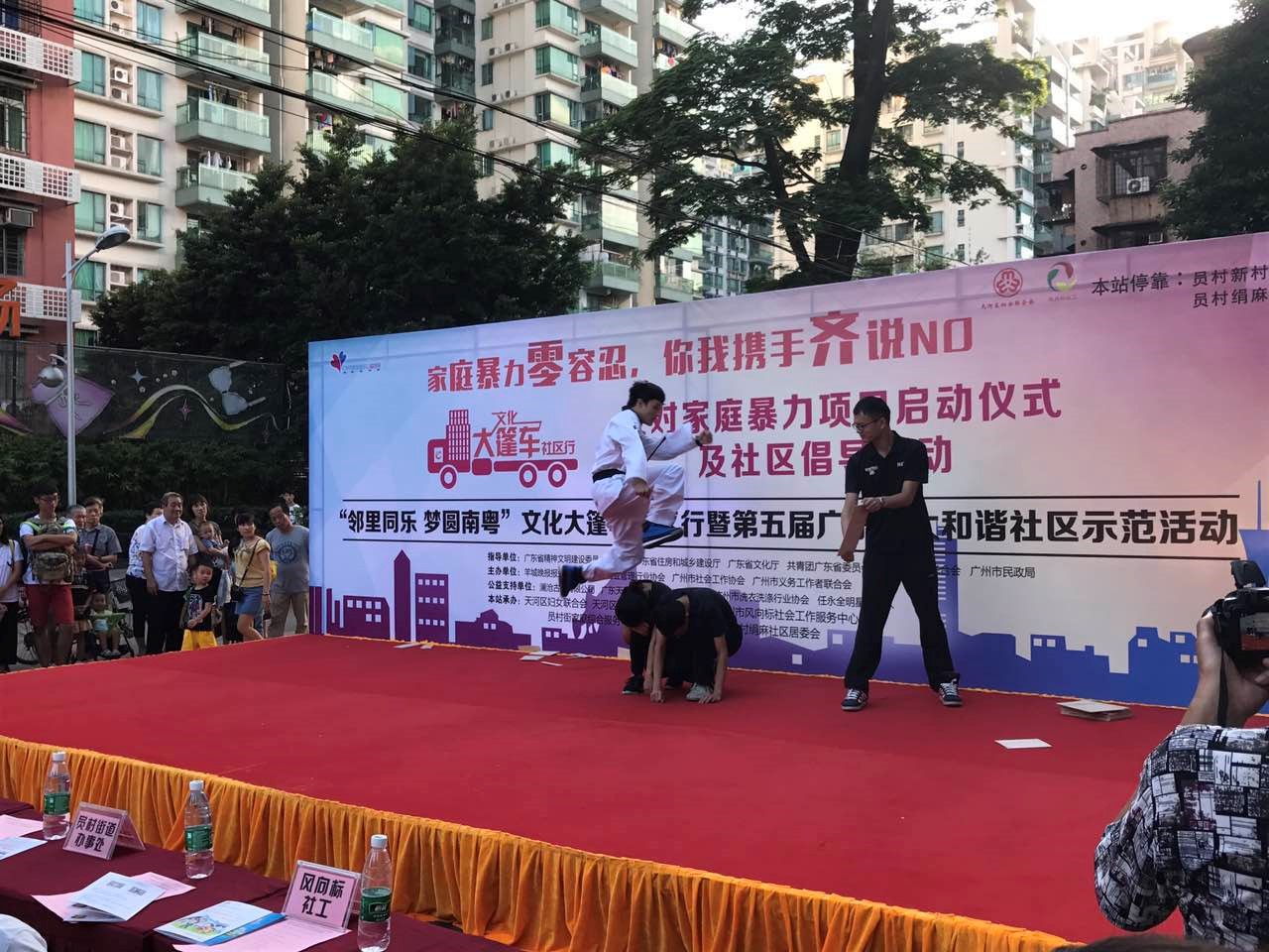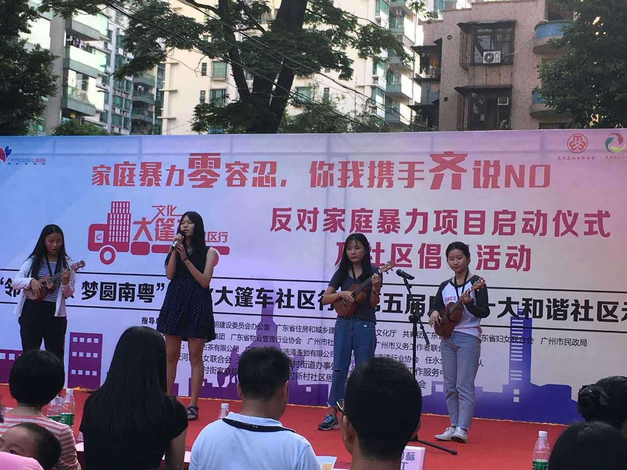 2016年10月27日下午,为了响应党和国家对新一代大学生立足实践,服务人民,奉献社会,促进和谐的号召,广外政管学院第三期20多位党员发展对象参与了员村社区“家庭暴力零容忍,你我携手齐说NO”反对家庭暴力项目启动仪式及社区倡导的志愿者活动。经过了长时间的精心准备,发展对象们组分别组成了几个小组在活动文艺汇演的舞台上留下一幕幕精彩的瞬间,组织了包括话剧、跆拳道、吉他弹唱、小品、舞蹈等表演,用这种独特的方式向社区群众传递反家暴的信息,提高了社区群众的法律意识,赢得了群众的称赞。