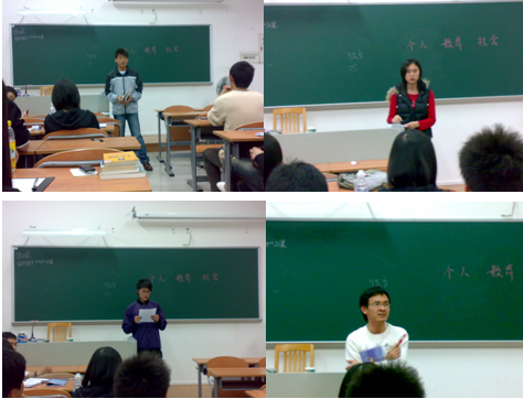 接下来,33名党员、预备党员被分为了5个小组就“解放思想,立志修身,博学报国”这个主题,针对个人、教育和社会三者之间的关系谈谈大学生“思想解放”的现实意义。大家相互交换意见,现场气氛十分热烈。讨论过后,各个小组还派出了代表将本小组讨论的一些要点和精髓与其他小组成员一起分享。