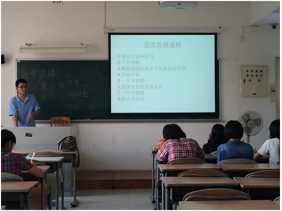 会议一开始,部长李俊豪就介绍了党员发展的流程 , 即由团员到积极分子到党校学员到预备党员再到党员的发展流程。