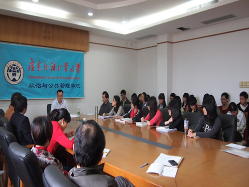 2013年4月3日下午两点半,政管学院关于两会焦点报告交流会在院系办公楼426顺利举行,全国政协委员、我校副校长顾也力教授为政管学院作了精彩的两会精神交流报告。学院党委书记范静静、学院党委副书记邵兵、院长彭未名以及教工党支部书记、系主任和辅导员等参加了本次交流会。会议由范静静书记主持。