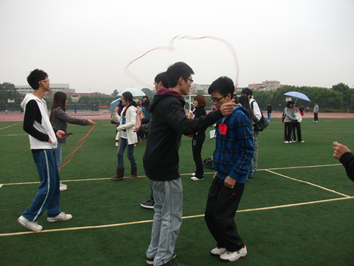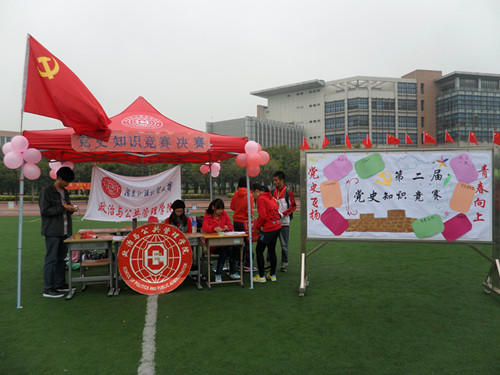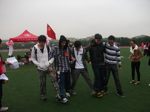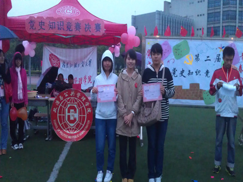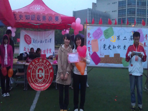 2012年11月24日清晨,刺骨的寒风呼啸着,还夹杂着微微的细雨,校道上的行人也特别稀少。但是在这个时候,一抹亮丽的红色出现在校道上,这是政管学院党建工作委员会的全体工作人员。他们身穿红衣,手里拿着各种道具用品和物资,兴致勃勃地向假草场走去,为政管学院第二届党史知识竞赛的决赛做准备。